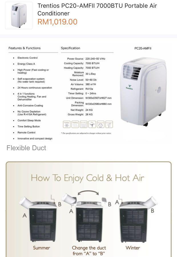 Trentios Portable Aircon Pc20 Amfii Tv Home Appliances Air Conditioners Heating On Carousell